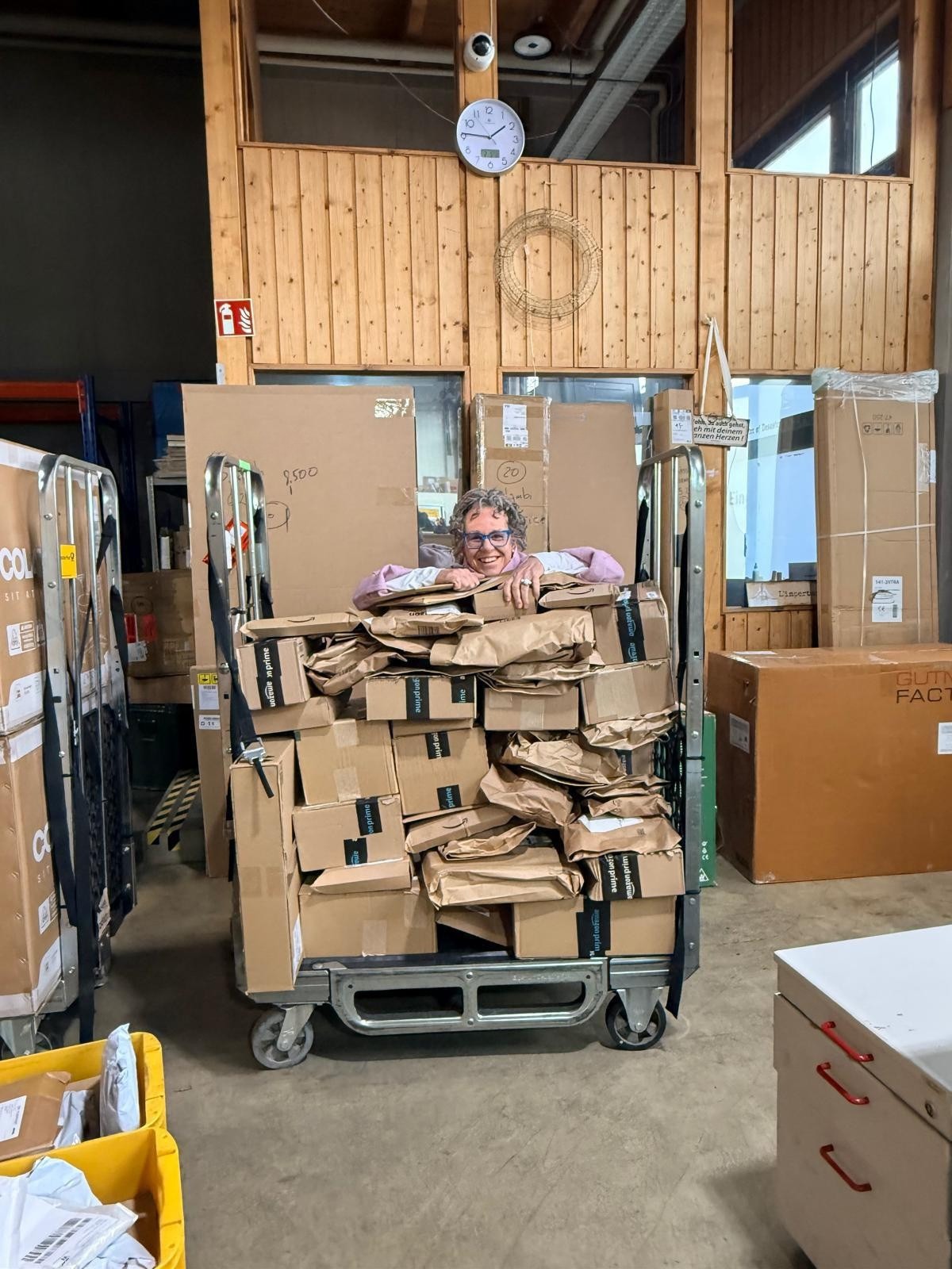 - Hilfsmittel vor Ort: Hubwagen & Gabelstapler.